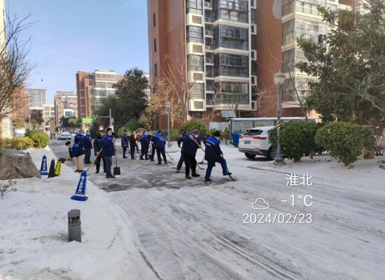 近日,淮北市迎來大范圍降雪。為保障小區(qū)業(yè)主的安全出行,防止路面結(jié)冰,龍溪水岸物業(yè)組織現(xiàn)場人員迅速投入到清雪工作一線,對小區(qū)內(nèi)的積雪進行大面積清掃。