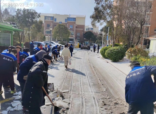 由于氣溫較低,路面的雪被壓得很結(jié)實,清掃工作十分困難,但大家都爭先恐后,干勁十足,一心想著將路面的積雪冰塊盡快清除,保證居民的正常安全出行。經(jīng)過大家的共同努力,積雪很快被清理干凈,極大地方便了居民的安全出行。掃雪除冰工作不僅為業(yè)主營造出了干凈整潔的出行環(huán)境,消除了安全隱患,提高了居民的獲得感和幸福感,也進一步拉近了與業(yè)主之間的距離。